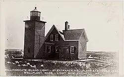| Billingsgate (en) | 41° 52′ 14,29″ N, 70° 04′ 07,03″ O | États-Unis, au large de Cap Cod | 0,24 km2, occupée au XIXe siècle par une trentaine de familles de pêcheurs et de baleiniers, elle abritait un phare depuis 1822. Sujette aux inondations (1855, 1873, 1875, 1882) et malgré le mur protecteur qu'on bâtit en 1885, l'île est évacuée au début du XXe siècle (on emporte les maisons sur des radeaux). Le phare est détruit en 1915 et l'île disparait complètement vers 1940[47]. | C | ![]() |