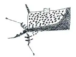 | Eilean-a-beithich | vers56° 13′ N, 5° 37′ O | Ecosse | Dans cette île du groupe Slate, une carrière d'ardoise est exploitée depuis le XVIe siècle. Elle atteint un hectare de surface et 76 m de fond quand, tôt le matin du , la paroi se rompt sous les effets conjugués d'un vent violent et d'une marée de forte amplitude, et la mer envahit la carrière (illustration : reste de la paroi sud de la carrière, avec la brèche)[42]. | H | |