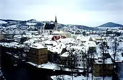 L'un des monuments emblématiques de la cité est le château (Hrad), campé sur une hauteur dominant la ville. Il est relié au reste de la vieille-ville par une rue en pente raide et par un pont enjambant ses anciennes douves.