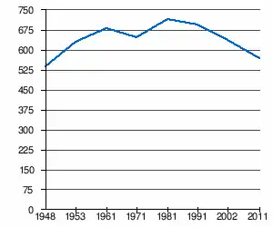 - 1 2 (sr + en) « Livre 20 : Vue d'ensemble comparative de la population en 1948, 1953, 1961, 1971, 1981, 1991, 2002 et 2011, données par localités) » [PDF], pages du recensement de 2011 en Serbie - Institut de statistique de la république de Serbie, (consulté le )