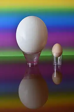 L'œuf d'autruche est le plus gros œuf à coquille d'animal vivant, et celui du colibri d'Hélène, le plus petit.