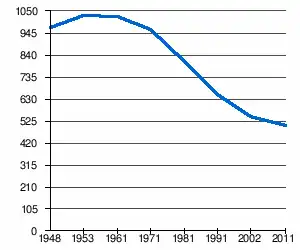| 973 | 1 027 | 1 025 | 961 | 809 | 650 | 545[2] | 502[1] |