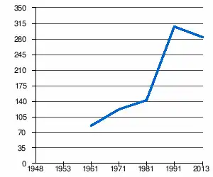 En 1991, le village comptait 308 habitants[3], répartis de la manière suivante[2] :
