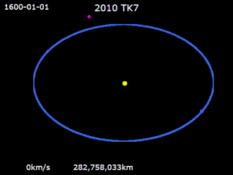 (706765) 2010 TK7 coorbite avec la Terre autour du Soleil sur une orbite qui lui est propre mais qui est similaire à celle de notre planète.