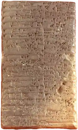 - 2112 à 2004 av. J.-C.[a] : IIIe dynastie d’Ur[12]. Elle pousse loin la puissance administrative : un ensí, fonctionnaire nommé aux compétences civiles, se trouve à la tête des circonscriptions ; un shagin aux pouvoirs militaires étendus, coiffant souvent ceux de l’ensi ; à un niveau inférieur on trouve des gendarmes, des contrôleurs, des courriers, des chargés de mission qui circulent à travers tout l’empire sur ordre du palais, assurent la cohérence de la politique d’ensemble et la sécurité générale, renforcent la centralisation administrative au profit de la capitale et transmettent l’information. Une bureaucratie minutieuse et tatillonne gère, compte et contrôle toute cette administration qui s’occupe aussi bien de l’économie que de la guerre ou du service des dieux. Le poids d’une telle administration a sans doute contribué à l’écroulement de l’empire. La documentation de la IIIe dynastie d’Ur n’atteste pas l’existence d’une propriété privée mais au contraire une organisation étatique de la production agricole, image peut-être faussée parce que les textes proviennent de la gestion administrative de l’État et non d’archives privées. Cette documentation ne concerne pratiquement jamais les jardins et les palmeraies mais seulement les domaines céréaliers, exploités sous forme de grandes unités de production, même si des tenures de taille modeste sont concédées en guise de salaire. Toute une activité manufacturière se greffait sur le domaine[13].