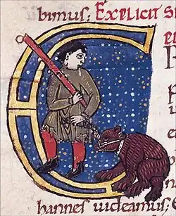 Bateleur montreur d'ours sur une miniature de 1125 - un carnaval de Cologne,
