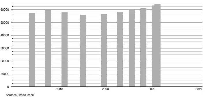 - ↑ Population selon le sexe et l'âge quinquennal de 1968 à 2013 - Recensements harmonisés - Séries départementales et communales