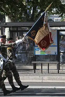 - ↑ Décision no 12350/SGA/DPMA/SHD/DAT du 14 septembre 2007 relative aux inscriptions de noms de batailles sur les drapeaux et étendards des corps de troupe de l'armée de terre, du service de santé des armées et du service des essences des armées, Bulletin officiel des armées, no 27, 9 novembre 2007