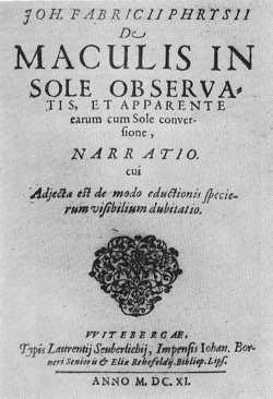 • Johannes Fabricius : Maculis in Sole Observatis et Apparente earum cum Sole Conversione Narratio ("Narration de taches observées sur le Soleil et de leur apparente rotation avec le Soleil", observation des taches solaires[7].