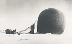 S. A. Andrée et Knut Frænkel avec leur ballon écrasé sur la banquise.