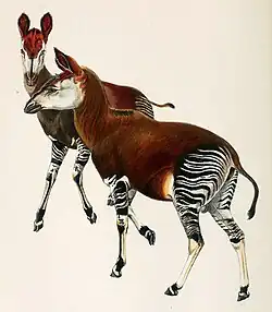 - ↑ Susan Lyndaker Lindsey, Mary Neel Green, Cynthia L. Bennett, The Okapi - Mysterious Animal of Congo-Zaire, University of Texas Press, (ISBN 9780292747074, présentation en ligne)