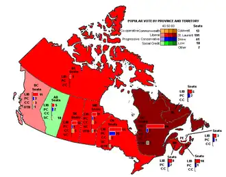 - 27 juin : élection fédérales. Les libéraux conservent le pouvoir. Louis St-Laurent (libéral) premier ministre du Canada.