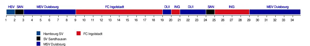 | Ingolstadt | 11 | 14 | 14 | 12 | 13 | 15 | 17 | 17 | 18 | 18 | 18 | 18 | 18 | 18 | 18 | 18 | 18 | 18 | 17 | 18 | 17 | 16 | 16 | 17 | 18 | 18 | 18 | 18 | 17 | 17 | 17 | 16 | 16 | 16 | 0 | 0 |