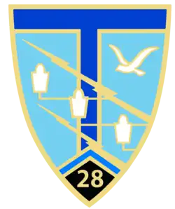 Héraldique de l'insigne du 28ème Régiment de Transmissions est homologué depuis le 10 septembre 1946 sous le n° H208.