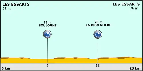L'arche de départ est située rue du Vieux Château sur la route départementale 160. Le parcours est tracé à l'ouest de la ville (D39, D37, D98). La ligne d'arrivée est située rue des Sables. Deux chronométrages intermédiaires sont effectués à Boulogne, au km 9, et à La Merlatière, au km 16. Le parcours est plat[3].