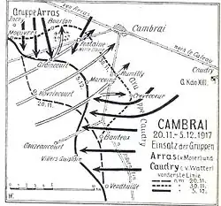 Au début de 1917, l'armée participe à la retraite vers la ligne Siegfried (→Opération Alberich) et, après avoir transféré l'AOK 1, tient approximativement le front est d'Arras-Queant (avec le 14e corps de réserve)-Bellicourt-Saint-Quentin (avec le 9e corps d'armée). Le 20 novembre 1917, l'aile droite de la 2e armée se trouve dans le champ d'attaque principal de la 3e armée britannique pendant la bataille de chars de Cambrai. Le 14e corps de réserve perd un peu de terrain, mais parvient à se maintenir dans l'avancée occidentale de Cambrai. Le général von der Marwitz mène une contre-attaque à partir du 30 novembre : le groupe Arras attaque entre Moeuvres et Bourlon, le groupe Caudry (13e corps d'armée) et Busigny (23e corps de réserve) mènent des attaques de diversion du sud à Marcoing via Banteux à Vendhuille. Les groupes du sud réussissent à avancer de huit kilomètres sur une largeur d'environ 16 kilomètres. Le groupe Arras qui arrive plus tard a moins de succès avançant de quatre kilomètres sur une largeur de dix kilomètres le 6 décembre 1917.