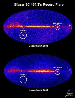 - 1 2 3 (en) NASA's GMS, « GMS: Brightest-ever Flare From Blazar 3C 454.3 », sur svs.gsfc.nasa.gov, (consulté le )
