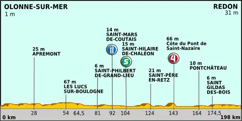 Pont de Saint-Nazaire, seule difficulté de l'étape (Catégorie 4). Olonne-sur-Mer à Redon | |||||||||||