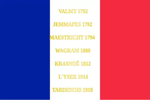 - ↑ Décision no 12350/SGA/DPMA/SHD/DAT du 14 septembre 2007 relative aux inscriptions de noms de batailles sur les drapeaux et étendards des corps de troupe de l'armée de terre, du service de santé des armées et du service des essences des armées, Bulletin officiel des armées, no 27, 9 novembre 2007