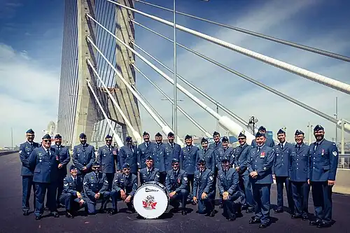 | Corps de clairons et tambours de l'Esc 118 en 1939 | Fanfare de l'Escadron 438 dans les années 1950 | Fanfare de l'Escadron 438 à l'ouverture du pont Champlain à Montreal - 2019 |