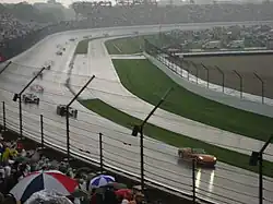 - Interrompue au 113e tour en raison de la pluie, puis relancée à l'issue d'un délai de près de 3 heures, l'épreuve a été définitivement stoppée après 166 des 200 tours prévus, à nouveau en raison des conditions météorologiques.