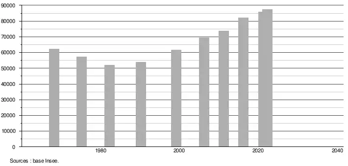 - ↑ Population selon le sexe et l'âge quinquennal de 1968 à 2013 - Recensements harmonisés - Séries départementales et communales