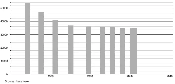 - ↑ Population selon le sexe et l'âge quinquennal de 1968 à 2013 - Recensements harmonisés - Séries départementales et communales