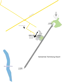 Il n'y avait qu'une piste à Temindung, orientée à 33 et 213 degrés, appelée 04/22. Atterrir à Temindung pouvait être spectaculaire mais aussi constituer un véritable défi. Suivant la direction de l'atterrissage, l'avion devait passer à très basse altitude au-dessus de zones très peuplées à Samarinda, soit parfois quelques mètres au-dessus du toit des immeubles[1].
