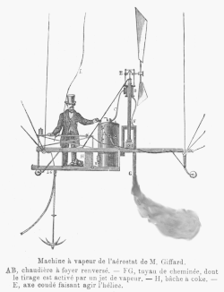 Sous les auspices d'Eugène Godard, Henri Giffard s'intéresse à la navigation aérienne et effectue plusieurs ascensions à l'hippodrome de l'Étoile de Paris[2],[3]. Dépourvu de fortune, il se lie d'amitié avec deux élèves de l'École centrale, David et Sciama, et tous les trois envisagent la réalisation d'un navire aérien à vapeur[4]. En , il dépose une demande de brevet : Application de la vapeur à la navigation aérienne[5], dans lequel il décrit son moteur à vapeur et les caractéristiques de son aérostat. Le brevet est déposé sous le no 12 226[6]. L'aérostat est construit sur ses plans par Eugène Godard[7].