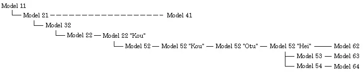 Dans le système de désignation de la Marine impériale et dans le système de désignation du type d'appareil, exposés précédemment, les variantes de chaque version étaient exprimées selon deux chiffres. Le premier correspondaient au type de cellule, le deuxième au type de moteur.