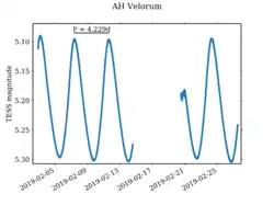 - ↑ (en) V* AH Vel -- Classical Cepheid (delta Cep type) sur la base de données Simbad du Centre de données astronomiques de Strasbourg.