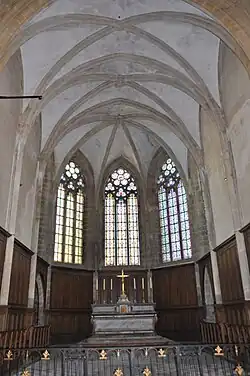 Il présente une longueur de 13 m. Il était séparé autrefois de la croisée du transept par la grille de clôture, remplacée par une table de communion du XVIIIe siècle au coin gauche de celle-ci le lieu du Miracle, reposoir sur lequel était posé le reliquaire. Il était scellé sur le mur dont on voit encore les marques et s'appuyait sur la grille de clôture du chœur.