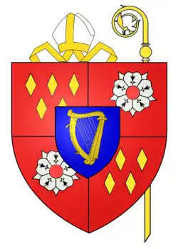 - À partir de 1646 : écartelé aux 1 et 4 de gueules à une quintefeuille d'hermines, aux 2 et 3 de gueules à 5 fusées d'or, 3 et 2, sur le tout d'azur, à une harpe d'or[8].