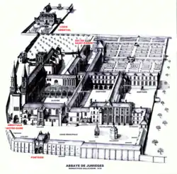 - ↑ Georges Lanfry: L'abbaye de Jumièges, Plans et documents, page:21.