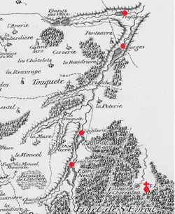 Carte des forges et tréfilerie de l'abbaye de Saint-Évroult en 1720.