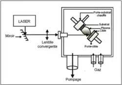 Techniquement, les dépôts de couches minces par ablation laser pulsé sont fondés sur l'interaction entre le matériau cible que l'on souhaite déposer et un faisceau laser impulsionnel (impulsion de l'ordre de la nanoseconde) de forte énergie. Lors du processus d'irradiation laser, des particules sont éjectées de la cible. Dans un premier temps, confinées près de la surface de la cible, ces particules constituent ce que l'on appelle la couche de Knudsen. De mêmes dimensions que le spot laser (1 à 2 ), cette dernière est principalement composée d'ions, d'électrons, mais également d'atomes neutres, de particules diatomiques ou encore de gouttelettes de matériaux en fusion...