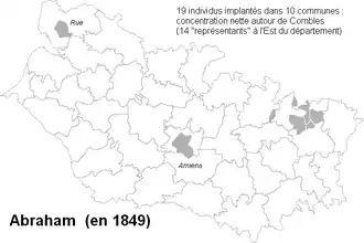 - Localisation des patronymes au milieu du XIXe siècle dans la Somme (accès alphabétique par paragraphe à une page du site)