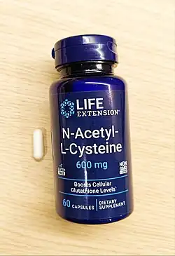 La N-acétylcystéine ou acétylcystéine (DCI) ou NAC est un acide aminé non essentiel, qui stimule la production de glutathion, un antioxydant. L'acétylcystéine est un thiol, qui peut s'oxyder en réduisant la quantité de radicaux libres. Il est utilisé comme médicament et comme complément alimentaire.