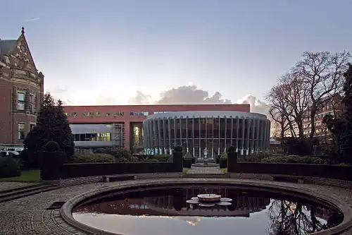 Depuis 1923, l'Académie de droit international de la Haye siège au palais de la Paix aux côtés de la Cour permanente de Justice internationale, puis de la Cour internationale de justice et du Bureau de la Cour permanente d'arbitrage.