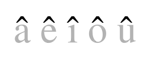 Lettres a, e, i, o et u minuscules portant un accent circonflexe.