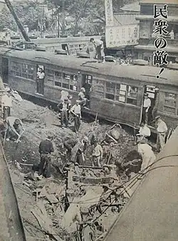 L'accident fait partie des « Trois grands mystères des chemins de fer japonais » survenus en 1949 avec l'accident de Shimoyama et l'accident de Matsukawa, et dont il est supposé que les coupables seraient des membres du Syndicat national des travailleurs du chemin de fer de la Japanese National Railways (jusqu'au 1er juin 1949 : Société gouvernementale des chemins de fer japonais). Le gouvernement accuse dix personnes de sabotage ferroviaire ayant entraîné la mort, dont le conducteur, Keisuke Takeuchi, qui n'était pas à bord quand le train dérailla.