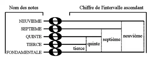 À partir de la fondamentale, on nomme les autres notes réelles par le nom de l'intervalle ascendant qui les sépare de celle-ci, même si cette fondamentale ne se trouve pas à la basse :