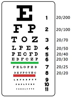 - ↑ « ISO 8596:2017 Optique ophtalmique — Mesure de l'acuité visuelle — Optotype normalisé et optotypes cliniques et leur présentation », extrait, ISO (consulté le ).