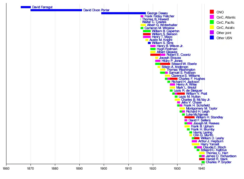 Harold R. StarkThomas C. HartClaude C. BlochHarry YarnellWilliam D. LeahyCharles F. HughesEdwin A. AndersonEdward W. EberleHilary P. JonesAlbert GleavesHugh RodmanWilliam S. SimsFrank Friday FletcherGeorge DeweyDavid Dixon PorterDavid Farragut