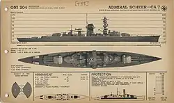| Armement | 6 canons de 280 mm 8 canons de 150 mm 6 canons anti-aériens de 105 mm 8 canons anti-aérien de 37 mm (SK C/30) 10 canons anti-aérien de 20 mm 8 tubes lance-torpilles de 533 mm |