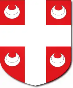 Ses armes sont de gueules, à la croix d'argent, cantonnées de quatre croissants de même.
