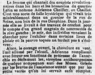 - 1 2 3 4 5 6 7 8 9 10 11 12 13 14 15 Dominique Petit, « CHAILLIEY Adrienne Stéphanie dite Marie Puget », dans Dictionnaire des anarchistes, Maitron/Editions de l'Atelier, (lire en ligne)