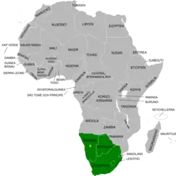 Carte de l'Afrique avec les pays de l'Afrique australe (en vert)