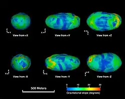 L'astéroïde (433) Éros, la destination principale de NEAR Shoemaker, était connu comme étant déchiré par des fissures, mais autrement comme étant solide. D'autres astéroïdes, y compris éventuellement Itokawa, sont connus comme étant des binaires à contact, c'est-à-dire deux corps majeurs se touchant, avec ou sans décombres remplissant leur frontière.