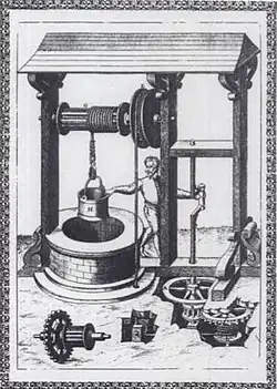 Mécanisme à manivelle imaginé par Ramelli pour monter et descendre sans effort le seau d'un puits.